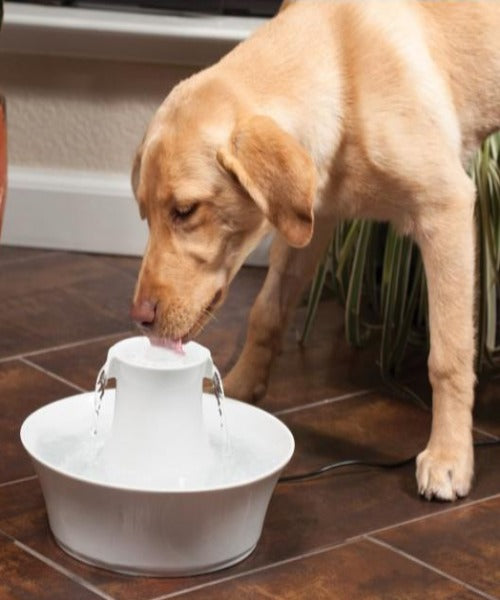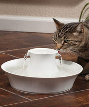 The Drinkwell Avalon Ceramic Pet Fountain continuously recirculates and filters your pet’s water, keeping it cleaner and fresher than a normal water bowl. The Avalon fountain offers 2 L of fresh, filtered water in a ceramic design that is easy to clean and looks great in your home. The upper and lower dishes provide two drinking areas for your pets and the circular design makes it easily approachable. Dual patented free-falling streams add oxygen for freshness and encourage pets to drink more.