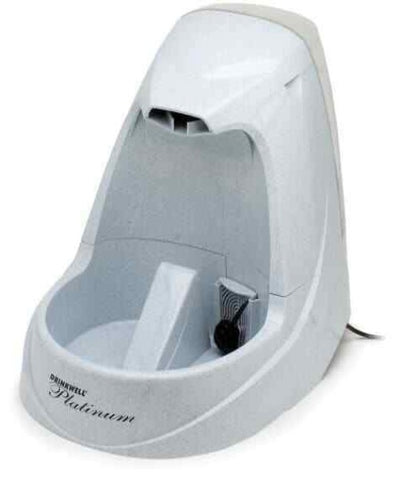 The Drinkwell® Platinum Pet Fountain is the ultimate in style and design. This all new design utilizes the same patented free-falling stream of water as the original Drinkwell® which entices pets to drink more, keeping them happy, healthy, and hydrated. The Platinum features a new snap on lid to prevent accidental removal, a pre-filter to catch large particles before they reach the motor, and a new submersible pump for nearly silent operation.