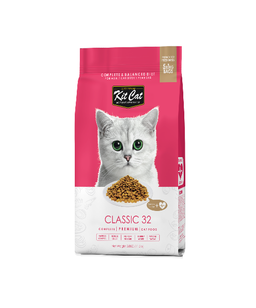Kit Cat Premium Dry Food is packed with high-quality ingredients that are carefully sourced and proud to set a new standard when it comes to nutrient-rich cat food. This complete diet offers your cat a pH balanced food that is wholesome and nutritiously formulated to support a healthy lifestyle. With selected quality meats containing essential vitamins, the Kit Cat formula also has an optimal ration of omega-3 to omega-6 fatty acids that promotes a healthy heart, skin and coat for your cats. In addition, this diet contains Fructooligosaccharides which promotes a healthier digestive tract and taurine for healthy eyes.