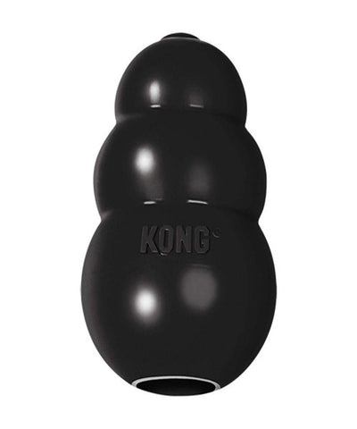The KONG Extreme dog toy represents the most durable strength of KONG rubber. Designed for the toughest of chewers, the KONG Extreme offers enrichment and helps satisfy dogs’ instinctual needs. The KONG unique, ultra-durable, natural rubber formula is designed for determined chewers, while the erratic bounce fulfills a dog’s need to play. Want to extend play time? Be sure to stuff with tempting bits of kibble and entice with a dash of peanut butter. Add to the fun by adding KONG Snacks and top with KONG Easy Treat. Stuff and Freeze for a longer-lasting challenge. Mentally stimulating toy; offering enrichment by helping satisfy dogs’ instinctual needs. KONG black rubber formula is specifically designed for power chewers. Unpredictable bounce for games of fetch. Great for stuffing with KONG Easy Treat; Snacks or Ziggies. Recommended worldwide by Veterinarians; Trainers; and dog enthusiasts. Natural rubber. Made in the USA. Globally Sourced Materials.