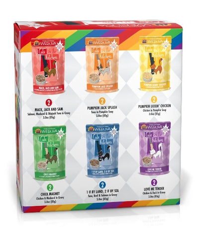 It’s paw-ty time! Fill up your pantry with the Pantry Party Pouch Variety Pack! Your funky feline will party on with two pouches of each of their favorite Cats in the Kitchen formulas: Mack, Jack and Sam, Pumpkin Jack Splash, Pumpkin Lickin’ Chicken, Chick Magnet, 1 If By Land, 2 If By Sea, and Love me Tender!