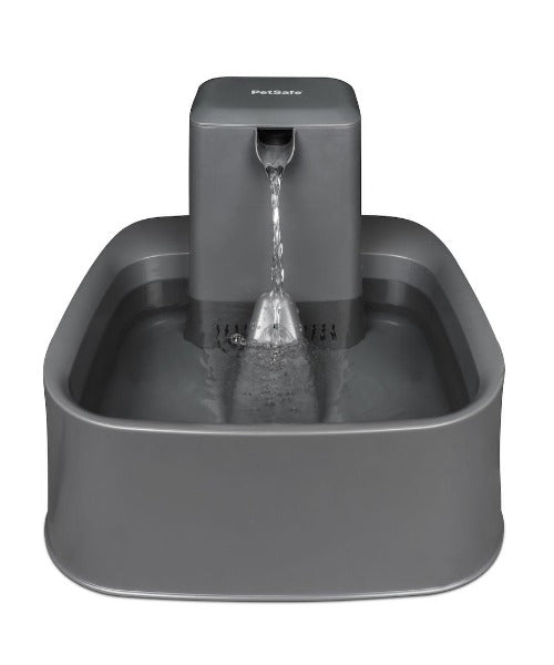 The Pet Safe Drinkwell 7.5 Liter Pet Fountain is designed with you and your pet in mind. This automatic water bowl features a free-falling water stream with adjustable flow control. Choose from nearly silent circulation on the lowest setting to a tranquil stream on the highest. The flow control allows you to tailor the water flow to your pet’s needs. The large capacity bowl is perfect for big dogs and multiple pet households and the square bowl design is large enough for several pets to drink out of at the same time with minimal splashing. When it’s time to refill, simply use a pitcher to fill the bowl to the desired level. The 7.5 Liter Fountain was specifically designed with no hard-to-reach crevices to clean, allowing you to spend more quality time with your pet.