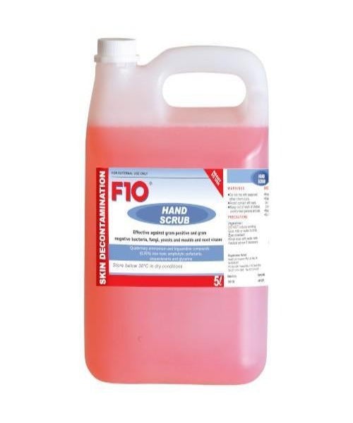 The F10 Hand Scrub is a surgical hand scrub and helps with patient pre-operative skin preperation. It contains the F10 core actives with high levels of skin care components and is therefore broad spectrum effective, yet safe and mild. F10 Hand Scrub is proven with zero skin irritation hazard on both intact and abroad skin. It is fast-acting and will eliminate gram positive bacteria, such as staphylococcus in 15 seconds and candida albicans in 30 Seconds. It is an ideal alternative to preparations containing chlorhexidene or iodine and will not cause any skin irritations. It is requested to refer to the package insert and product packaging for complete details before using the specific product.