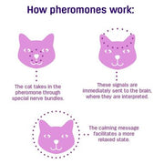 - Drug-free solution that helps reduce signs of stress such as peeing outside the litter box, scratching and hiding.
