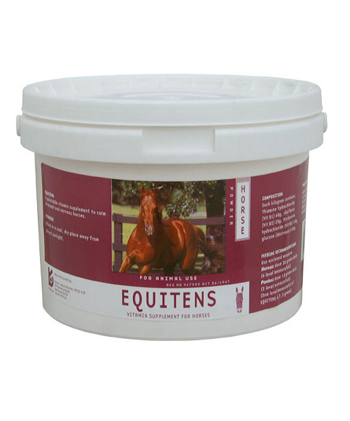 Kyron Equitens Powder Supplement for Horses s a natural calming agent for horses. It's a tasty vitamin supplement that can help horses who are stressed or nervous, as well as those who need a lot of vitamin B. It has a long list of advantages, including assisting in the training of difficult horses, calming the horse without reducing performance, being completely safe to use, and being ideal for use at shows, competitions, or events.