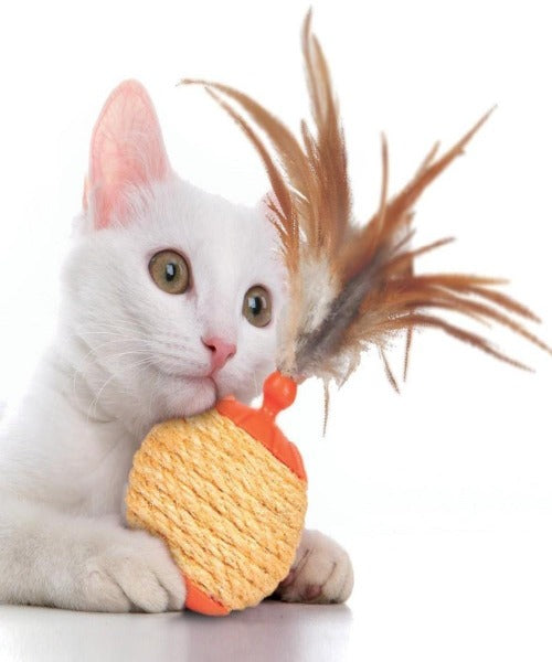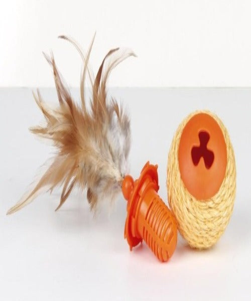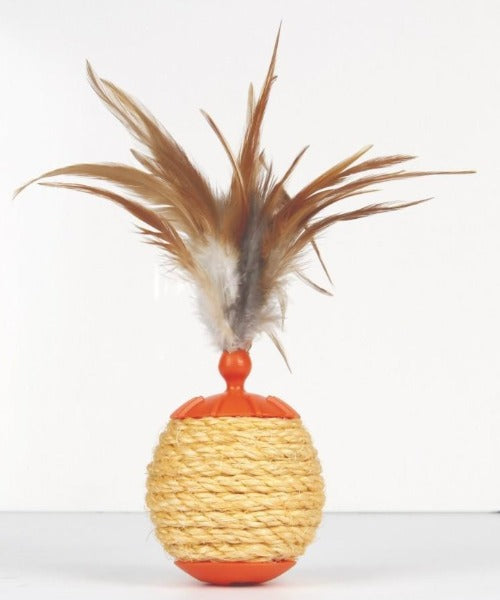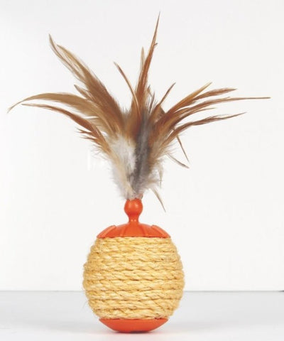 The L'Chic Roll Play Ball Cat Toy is a 3-in-1 toy that provides hours of fun, interaction and mental and physical stimulation! It includes a cat treat dispenser as well as a dried catnip chamber to keep your kitties energized. To keep your cat's claws healthy, it's also encased with sisal scratcher material. Last but not least, it's embellished with feathers to pique your cat's curiosity!