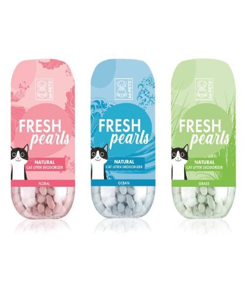 The M-Pets Fresh Pearls Ocean Cat Litter Deodorizer is natural & safe certified. Just sprinkle on top of any type of cat litter. The fresh pearls absorb, capture and neutralize odours. Lab-proven to have antibacterial properties and to effectively deodorize the whole cat litter box.