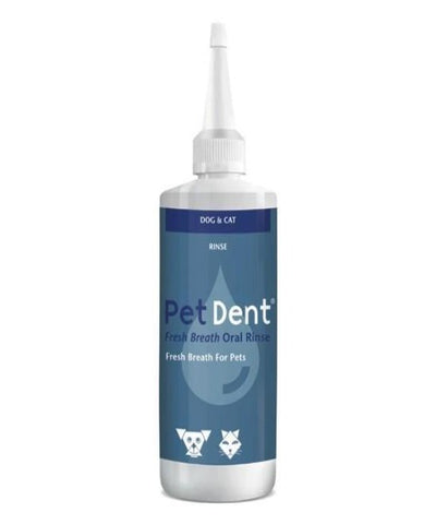 Pet Dent Fresh Breath Oral Rinse 100ml is a pleasant tasting sugar and alcohol-free rinse that contains chlorhexidine, zinc and calcium. It provides sufficient contact time for actives to react with bacteria and plaque and also helps reduce progression of caries