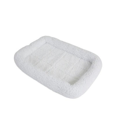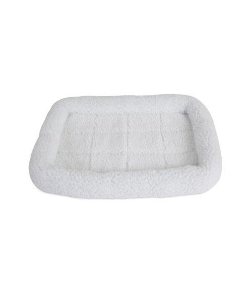 Petmate Snoozzy Bolster Crate Dog Mats bring comfort to your pet while being in their kennel when you're away. Designed to keep your pet cosy and warm, the sleep surface is made up of a cosy white sheepskin. As your pet curls up and nestles into the perfect position, they can rest their head on the thick, comfy bolster for added support. A non-skid bottom helps keep the mat in place.