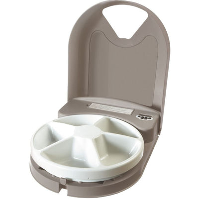 Ideal for both cats and dogs, the battery operated 5 Meal Pet Feeder delivers food, treats or medication at anytime – 24/7. The easy to read LCD display and dishwasher safe feed tray make this feeder user-friendly and easy to operate. Each section holds up to 230 g of dry food.