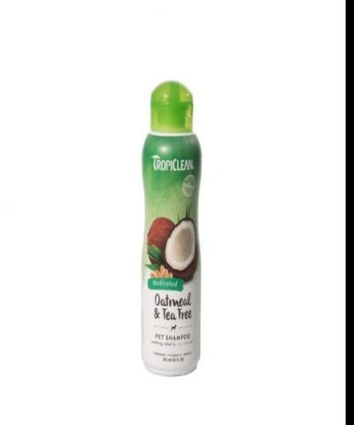 TropiClean Oatmeal & Tea Tree Medicated Itch Relief Pet Shampoo exfoliates, moisturizes and conditions you pet’s skin and coat, effectively soothing dry, itchy and irritated skin. The medicated formula is enhanced with beta hydroxy to help provide long lasting itch relief.