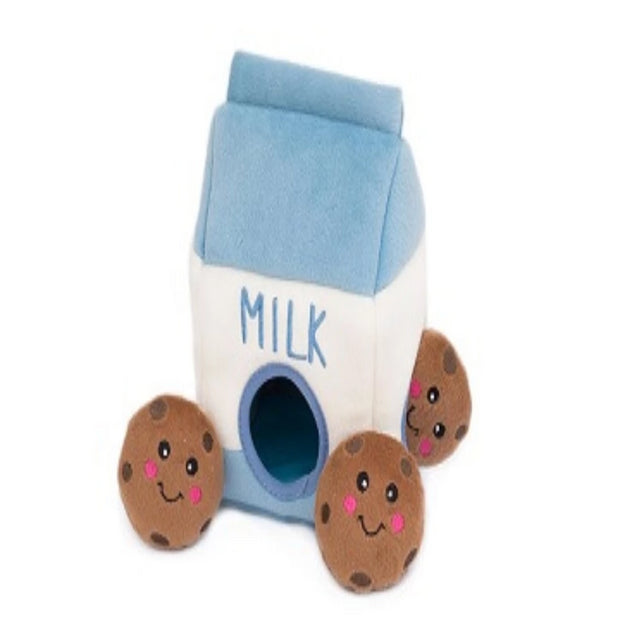 Dogs love to dig and burrow! The Milk & Cookie Burrow is an interactive, soft plush hide-and-seek dog toy. Stuff the squeaky cookies inside the Burrow and let your dog extract them for a mentally stimulating game that will keep them entertained for hours.
